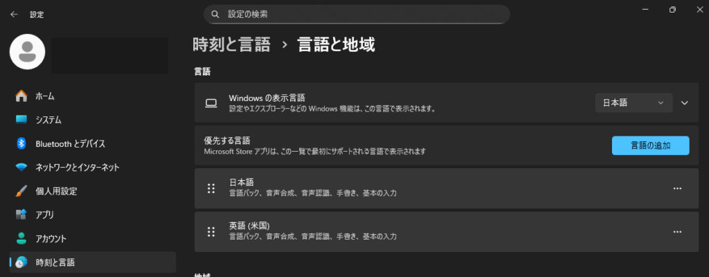 3. 優先する言語内の「言語の追加」